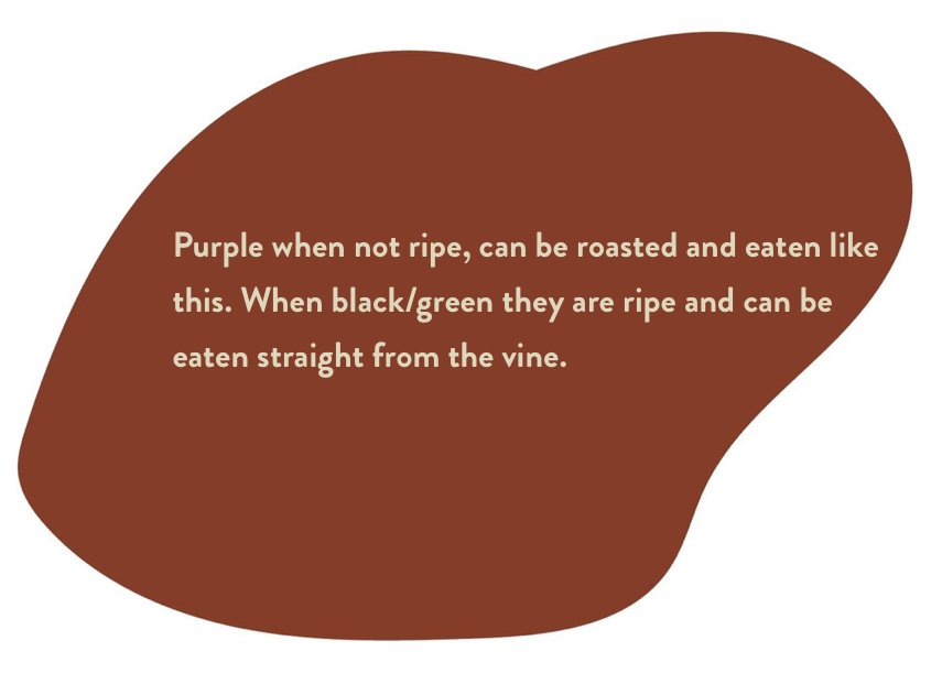 Edible uses: small fruit are ripe once they turn a deep green/black. Once ripe they drop from the vine. Sweet in taste and best eaten fresh.